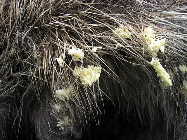 Viele Igeljunge, die bei mir abgegeben werden, sind leider voller Fliegeneier – auch wenn die Tiere unverletzt sind! Fliegeneier und Maden müssen SOFORT abgesammelt werden. Das Absammeln geht am besten mit einer spitzen Pinzette. Vor allen Dingen Haut und Fell rund um die Geschlechtsorgane absuchen, unter den Achseln, in den Leisten, Mund und Ohren! Fliegeneier sind klein, weißlich/gelb und stäbchenförmig und werden oft als „Büschel“ von mehreren Eiern abgelegt.